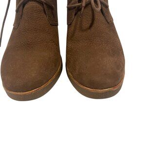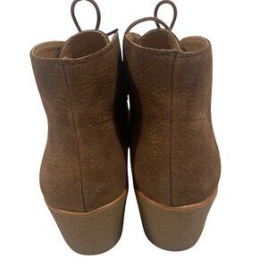 Lucky Brand Junes Nutmeg Embossed Nubuck Wedge Leather Booties Size 7