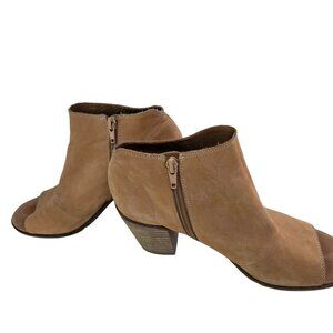 Lucky Brand Kasima Camel Suede Peep Toe Side Cute Out Booties Size 8.5M