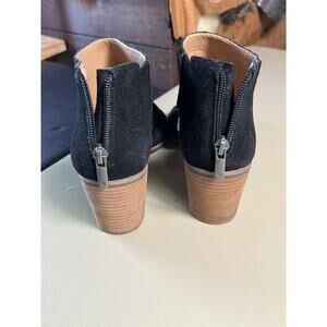 Lucky Brand Keight Black Suede Cut Out Side Peep Toe Sandal Booties Women 8M