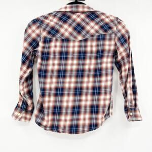 Lucky Brand Kids Boys Orange Blue Flannel Plaid Button Down Shirt Size 7