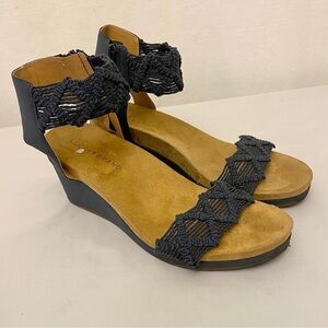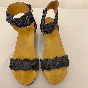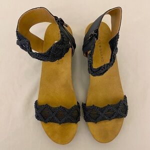 Lucky Brand Kierlo Wedge Sandals Macramé Heels Comfort Shoes Blue Size 9.5