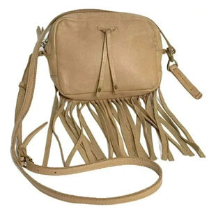 Lucky Brand Kyle Tan leather mini crossbody bag with fringe