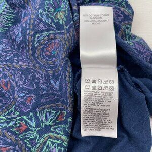 Lucky Brand LARGE Peacock Feather Paisley AOP Shirt Cttn/Modal Tie Front Blouse