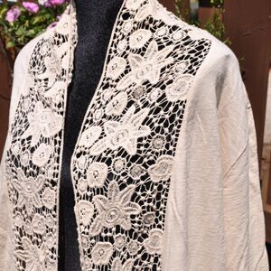 Lucky Brand L Crochet Embroidered Light Weight Knit Cardigan Top NEW