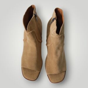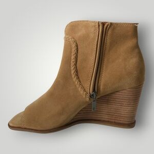 Lucky Brand LK Lureli Suede Peep Toe Wedge Booties Womens 9M Tan Leather Ankle Boots