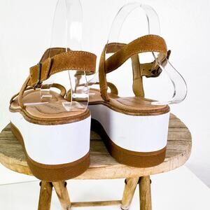 Lucky Brand LK-Tamri Suede Strap Wedge Platform Sandals Shoes Cognac White Size 9M NEW