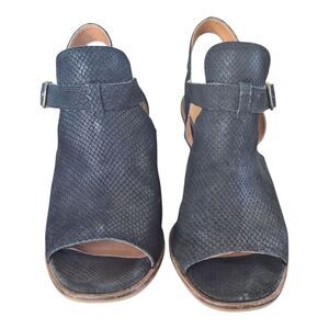 Lucky Brand Labradite Black Leather Snake Textured Chunky Sling Sandals