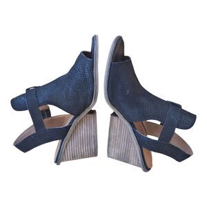Lucky Brand Labradite Wedge Stack Heel Sandals Black Leather Snake Texture sz 11