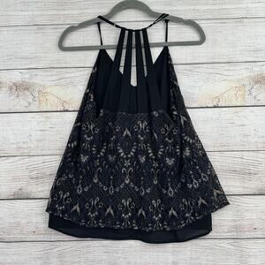 Item: Lucky Brand Lace Multi Strap Blouse Womens Small Black Gold Lined Adjustable