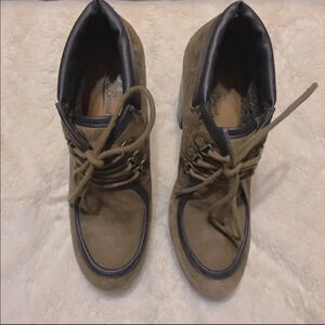 Lucky Brand Lace Up Chukka Platform Booties Cendara Ankle Boot High-Heel 8.5
