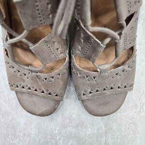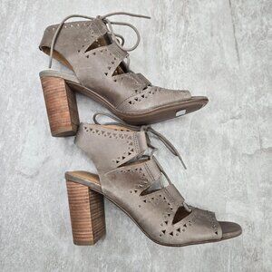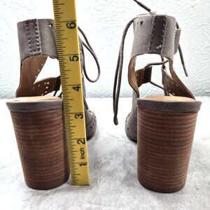 Lucky Brand Lace Up Heeled Sandals Size 7.5 Taupe Strappy Bohemain Block Heels