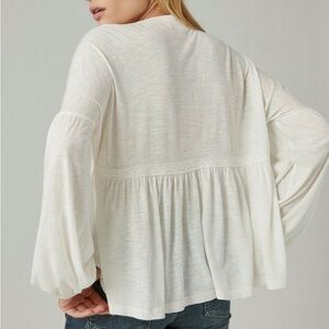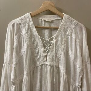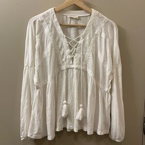 Lucky Brand Lace Up Trim cotton boho Peasant Top size small white
