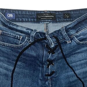 Lucky Brand Lace Up Bridgette Crop Flare Raw Hem Denim Jeans Orta Premium Sz 4
