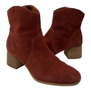 Lucky Brand Laidem Suede Ankle Boots Booties Burgundy Cognac Color women’s size 8.5 M /39 pre-owned good condition