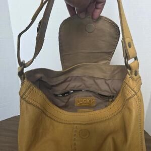 Lucky Brand Lamb Italian Leather CrossBody Bag Mustard Yellow Adjustable Strap. Pre-owned condition, please review all pictures for more details and measurements