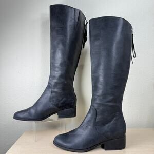 Lucky Brand Lanesha Black Leather Tall Knee High Riding Boot Back Zip Heritage 9