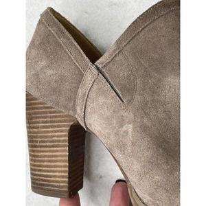Lucky Brand Laretah Taupe Suede Leather Open Toe High Heel Ankle Boots Size 9.5