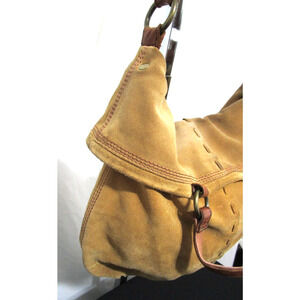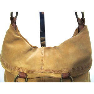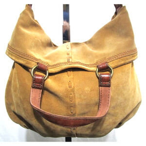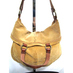 Lucky Brand Large Tan Brown Suede Fold Over Hobo Shoulder Bag Purse