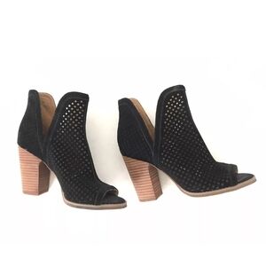Lucky Brand Larise Cut Out Ankle Bootie Womens 7.5 Black Slip On Suede Open Toe