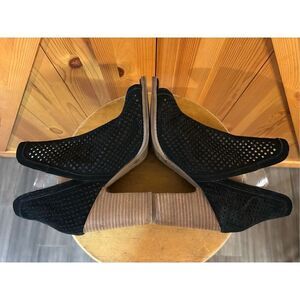Lucky Brand Larise Cut Out Open Toe Ankle Bootie Womens 10 Black Slip On Suede 4” heel minor wear on heels see pictures