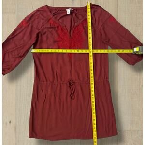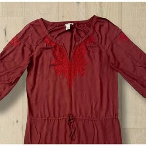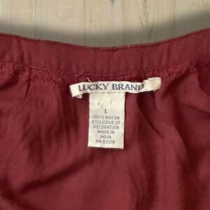 Lucky Brand Laszlo Red Tunic Midi Dress Embroidered Boho Peasant Sz Large Rayon
