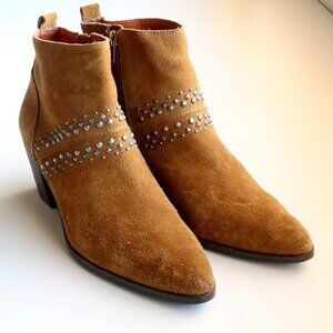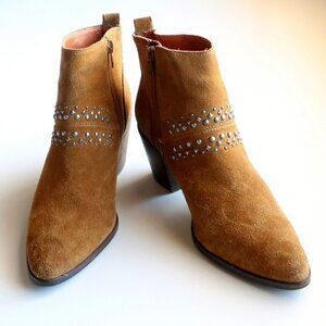 Lucky Brand Latinia Brown Suede Leather Almond Toe Studded Ankle Boots Booties 7