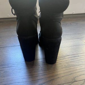 Lucky Brand Laverne Lace-Up Chunky High Heel Ankle Duck Booties Black Size 8.5M