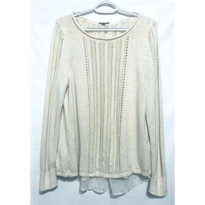 Lucky Brand Layered Split Back Sweater Ivory Gold Metallic SIze Medium Womens