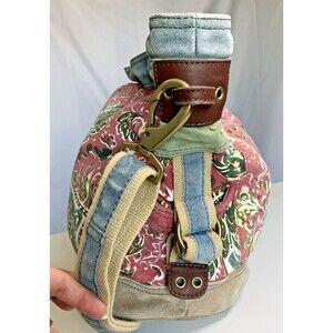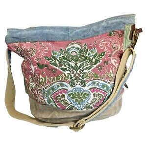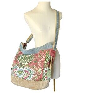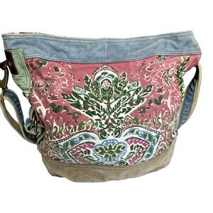 Lucky Brand Leather Canvas Runaway Y2K vintage crossbody Large Tote Floral Boho