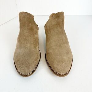 The classic bootie, now made with a shorter wood heel for added comfort without sacrificing style. This timeless pair of shoes feature an almond shaped toe with V cuts on the sides.