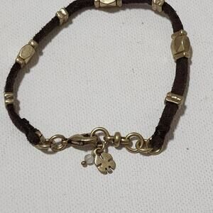 Lucky Brand Leather Cord Charm Bracelet Gold Tone Clover Bead Women