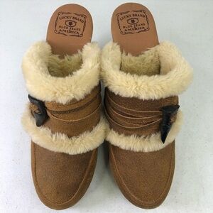 Lucky Brand Leather Mules with Faux Sherpa inside Size 8.5