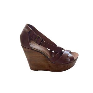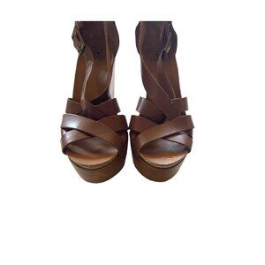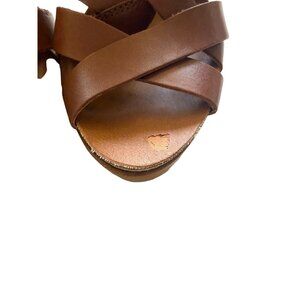 Lucky Brand Leather Platform Wedge Sandals Brown Size 8M Boho Hippie Festival