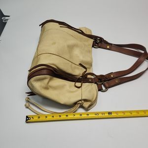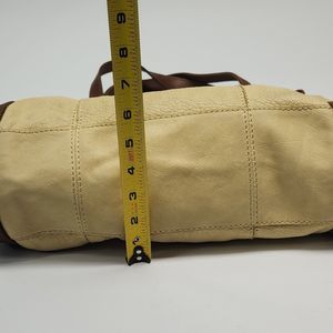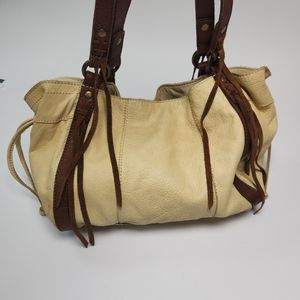 Lucky Brand Leather Purse Double Handle Brown Yellow Tote Hobo Boho Shoulder Bag