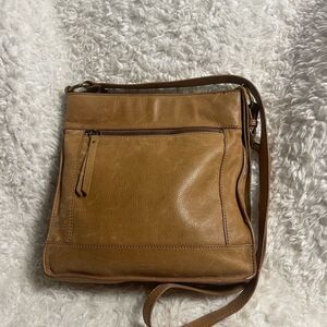 Lucky Brand Leather Tan medium Crossbody Bag stitching accent.