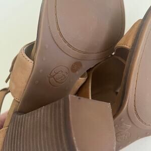 Lucky Brand 'Leesha' Womens 7.5 Fringe Block Heel Tan Nubuck Leather