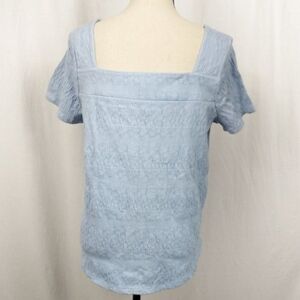 Lucky Brand Light Blue Short Sleeve Square Neck Top Women's Small S Casual EUC