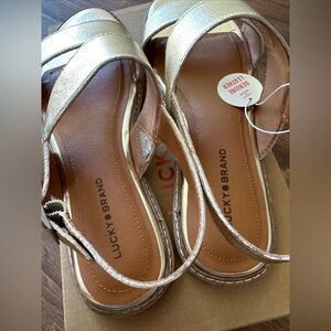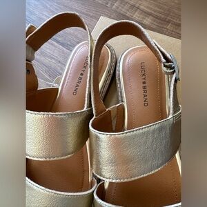 Lucky Brand Light Gold Leather Kaimana Metallic Flat Sandals- 9 US