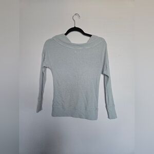 Lucky Brand Light Gray Waffle Knit Off the Shoulder Sweater