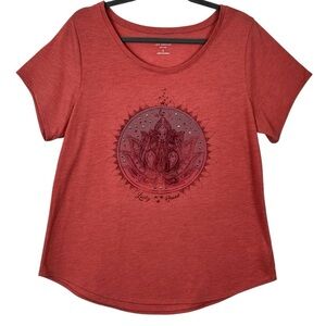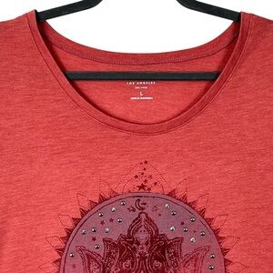 Lucky Brand Light Red Boho Celestial Graphic Tee w/ Rhinestone Accents – Large