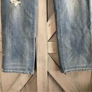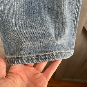 Preowned good condition some flaws- pull in denim (looks like part of the distressing), hem on both legs have a texture as shown. Mark on back hem area as shown.