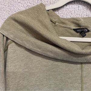 Lucky Brand Light Wash Cowl Neck Waffle Knit Thermal High Low Top Sz XL