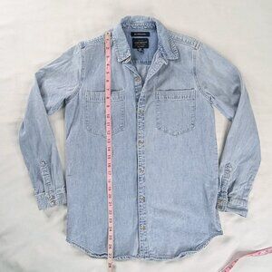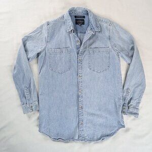 Lucky Brand Light Wash Denim Button Up Long Sleeve Front Pocket Boyfriend Shirt