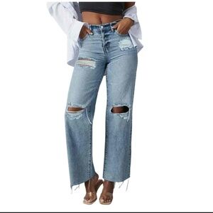 Lucky Brand Light Wash Distressed High Waisted Wide Leg Womens Jeans Size 6 28R