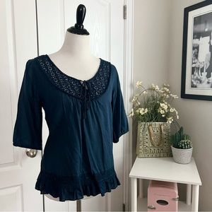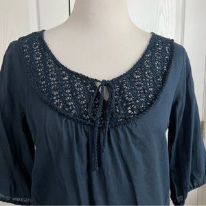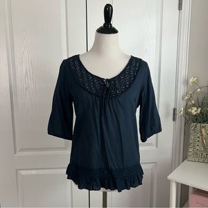 Lucky Brand Lightweight Crochet Navy Blue Top