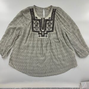 Lucky Brand Lilah Mirrored Boho 3/4 Sleeve Blouse