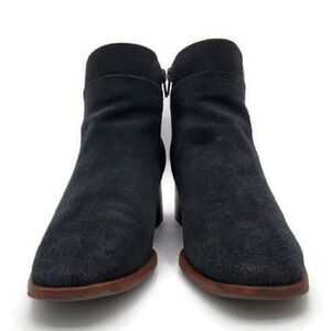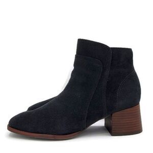 Lucky Brand Lilka Black Suede Square-Toe Chunky Wood Look Block Heel Pull-On Side-Zip Ankle Boots