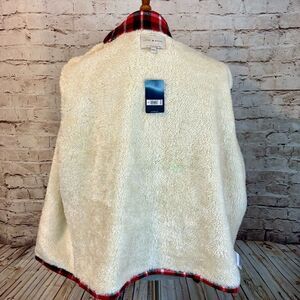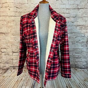 Lucky Brand Lined Shacket Plaid Flannel Button Down Red Black Womens Size XL NWT