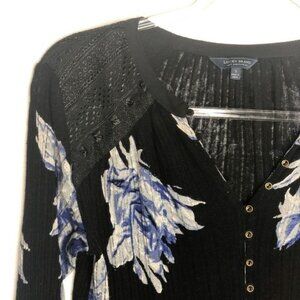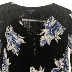 Embrace effortless style with this Lucky Brand Henley. Its floral print and tonal stitching on the shoulders add a touch of bohemian charm to your wardrobe. Crafted in a comfortable linen blend, this top is ideal for both casual outings and more polished occasions, blending comfort with timeless elegance.