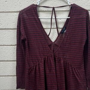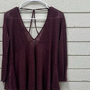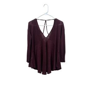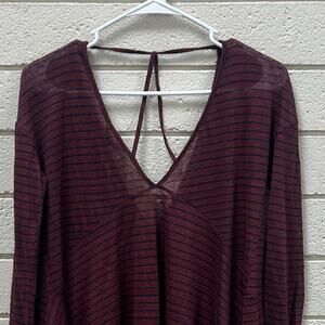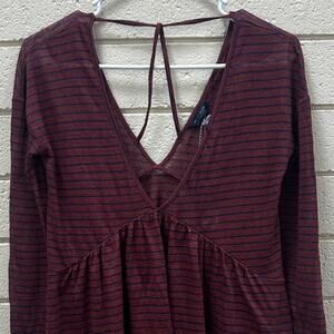 Lucky Brand Linen Striped Burgundy Top size X S NWT